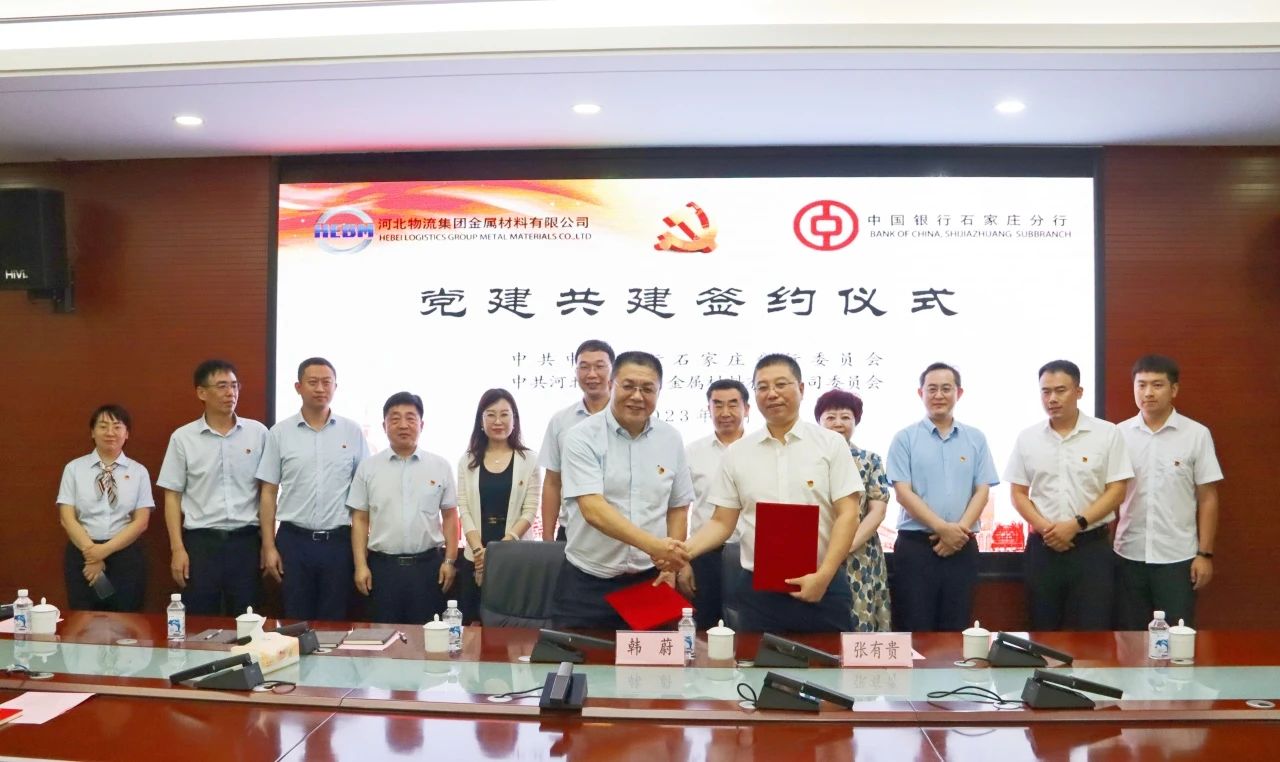 2023年7月21日,中共中國(guó)銀行石家莊分行委員會(huì)與中共河北物流集團(tuán)金屬材料有限公司委員會(huì)舉行黨建共建簽約儀式,中國(guó)銀行石家莊分行黨委副書(shū)記、副行長(zhǎng)韓蔚一行與金屬公司黨委書(shū)記、董事長(zhǎng)張有貴等公司領(lǐng)導(dǎo)進(jìn)行交流座談。